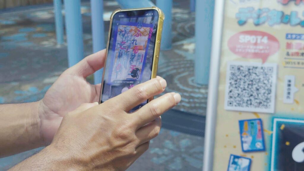 スマートフォンを使って、指定ポイントでARを起動し、デジタルスタンプを収集。