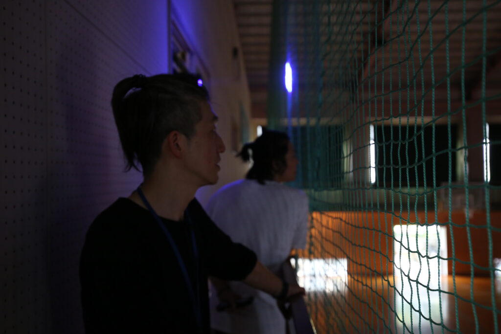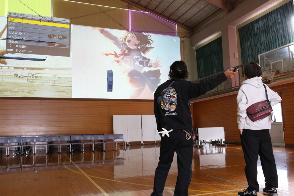 体育館は遮光設備が十分でなく、プロジェクションマッピングには不利な条件でした。