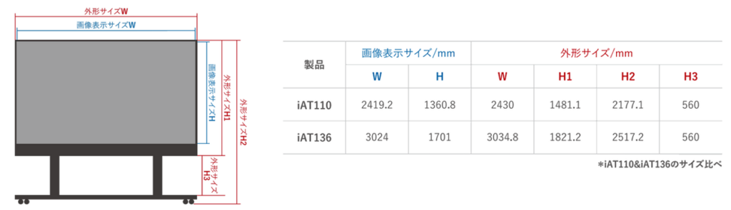 ディスプレイのサイズは110インチ・136インチと二種類あり、オフィスや会議室の大きさに合わせてお選びいただけます。