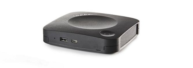 | ・PCに接続する機器 ・ボタンを押すだけでパソコンの映像、 音声出力を共有できる | ・共有画面に接続する機器 ・PCからきた情報を受信して画面に投影する ・配線は電源とHDMIケーブルのみ |